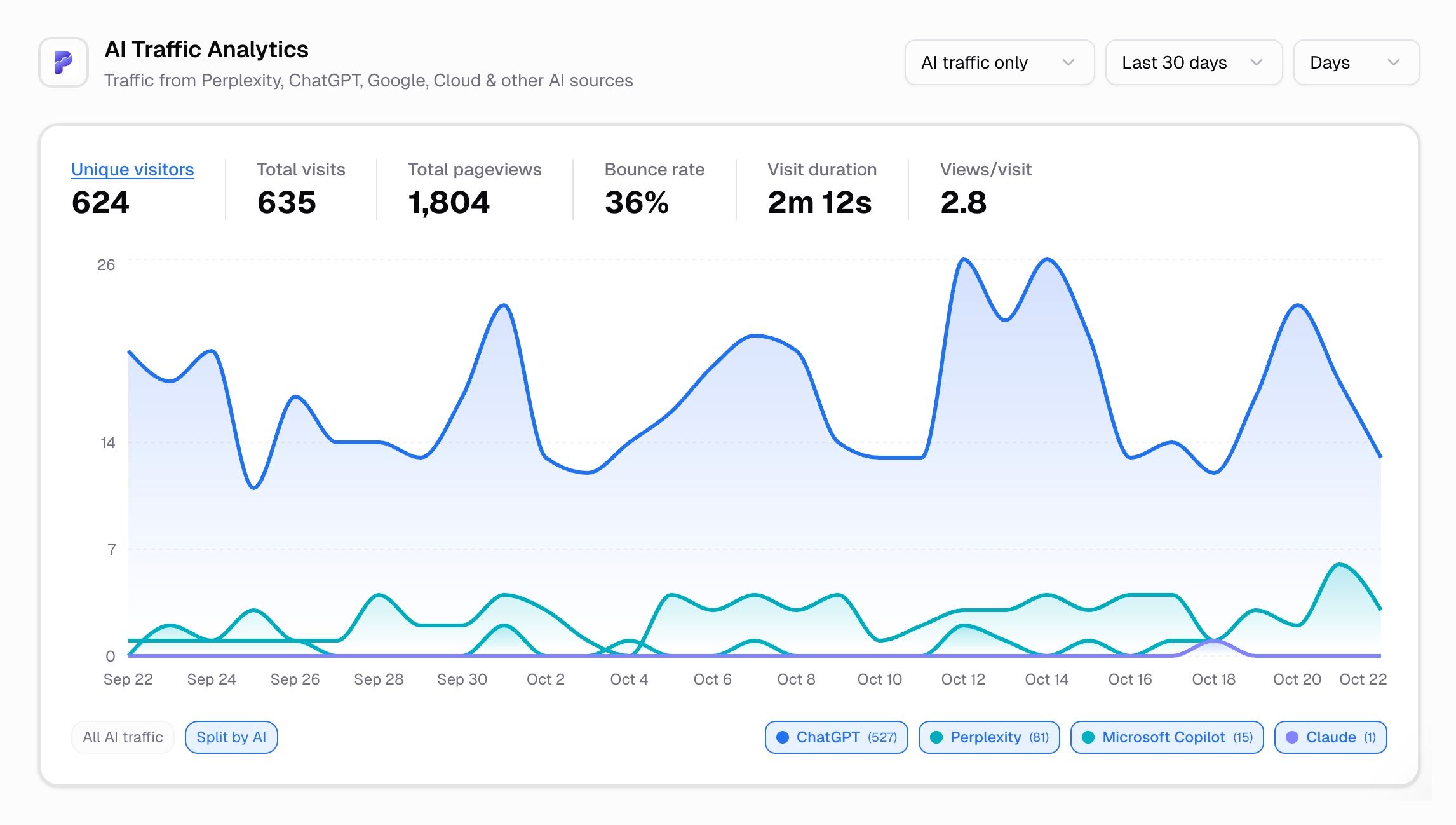 Filter between "AI-only" and "All traffic" views